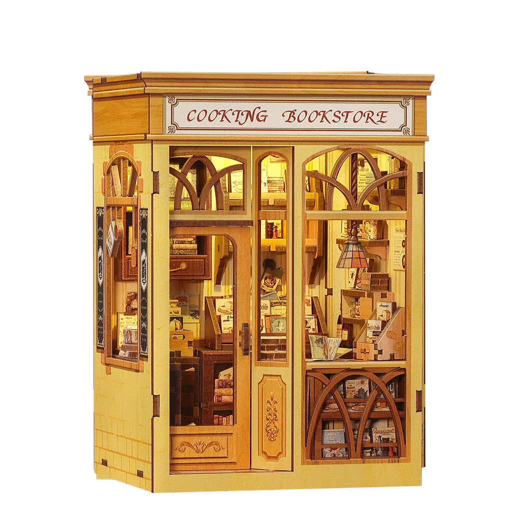 Der Aufbau des Book Nook Cooking Bookstore ist ein kreatives Erlebnis: Mit 156 Einzelteilen entsteht nach und nach ein kompletter Laden im Miniaturformat – ideal für Anfänger, Sammler oder alle, die stilvolle Deko lieben. Beleuchtet strahlt das Book Nook wie ein gemütlicher kleiner Buchladen an einem Herbstabend.