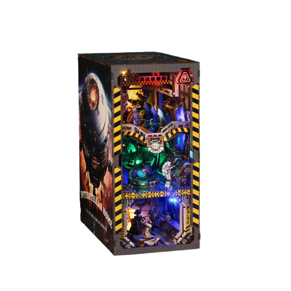 Der Aufbau des Book Nook Interstellare ist eine echte Mission: Holzteile zusammensetzen, Robotik-Elemente montieren, die energiereichen Lichteffekte installieren – und schon entsteht ein beeindruckendes Sci-Fi-Diorama, das sich perfekt in dein Bücherregal einfügt. Ideal für Fans von Weltraumforschung, futuristischer Technik und leuchtenden Miniaturwelten.