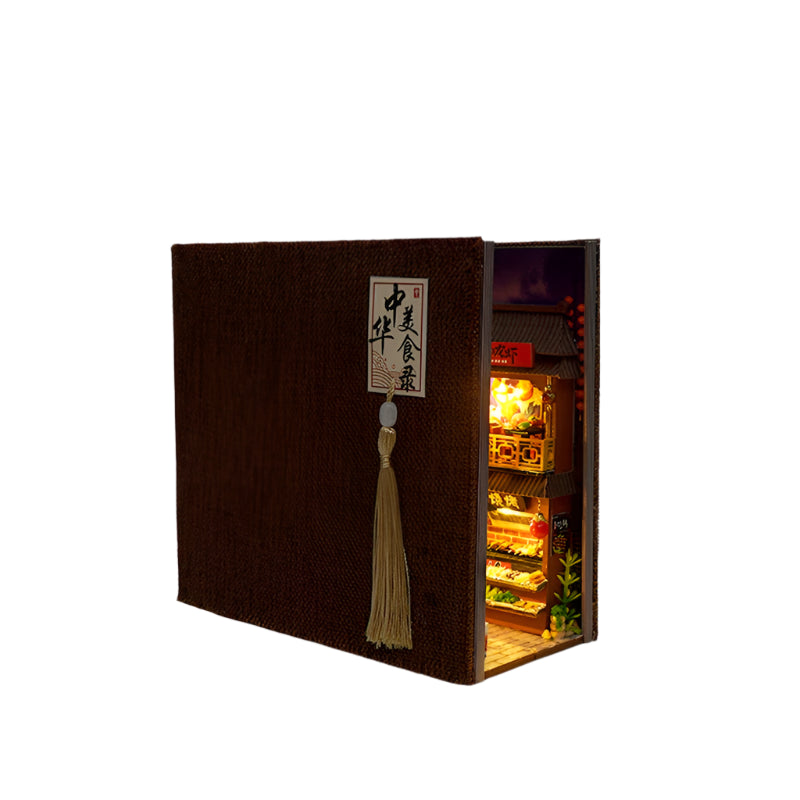 Mit dem Book Nook Winkelgasse öffnest du eine lebendige Miniaturwelt, die an eine traditionelle, geschäftige Marktstraße erinnert. Hinter der stoffbezogenen Buchhülle entfaltet sich eine warme Nachtkulisse voller Laternen, duftender Garküchen, farbenfroher Schilder und kleiner Läden, die mit köstlichen Speisen, Süßigkeiten und feinen Spezialitäten gefüllt sind.