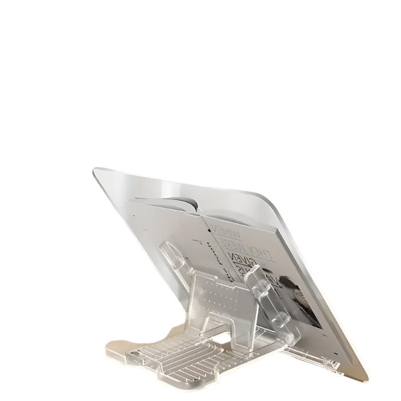 Gefertigt aus kristallklarem Acryl mit einer feinen Metallstruktur, ist dieser Buchhalter ein Designstück für Minimalisten. Die durchsichtige Frontplatte lässt selbst große Bücher frei schweben, während die dezenten Halteclips die Seiten sicher fixieren – ohne den Blick auf den Inhalt zu stören.