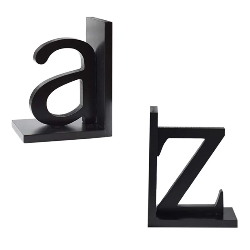 Design: Schwarze Holzbuchstützen mit den Buchstaben „a“ und „z“