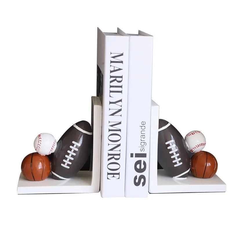 Mit viel Liebe zum Detail gefertigt, zeigen die Stützen naturgetreue Miniaturbälle – vom markanten braunen Football mit weißen Nähten über den klassischen Basketball bis hin zum charakteristischen Baseball. Jeder Ball ruht sicher auf einem stabilen, weißen Sockel aus robustem Kunstharz (Resin), das nicht nur langlebig ist, sondern auch einen hochwertigen Eindruck vermittelt. So halten Ihre Lieblingsbücher – ob Sportbiografie, Fanlexikon oder Roman – garantiert ihre Position.