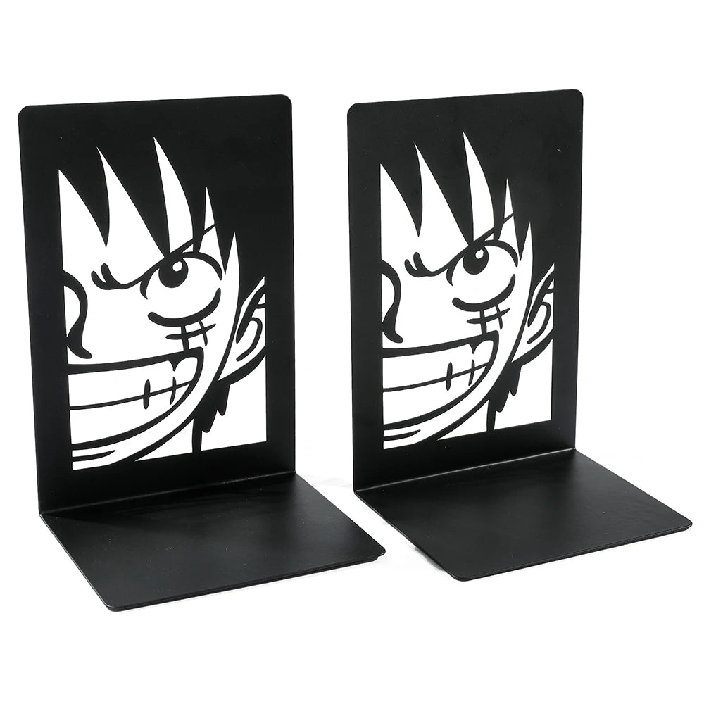 Diese Buchstütze aus schwarzem Eisen zeigt das ikonische Gesicht von Luffy im markanten Lasercut-Stil – sein freches Lächeln, die Narbe unter dem Auge und die wilden Haare lassen keinen Zweifel: Hier beginnt das nächste Abenteuer. Das Set besteht aus zwei spiegelbildlichen Elementen, die deine Bücher sicher umschließen und ihnen dabei einen Hauch von Rebellion und Freiheit verleihen.