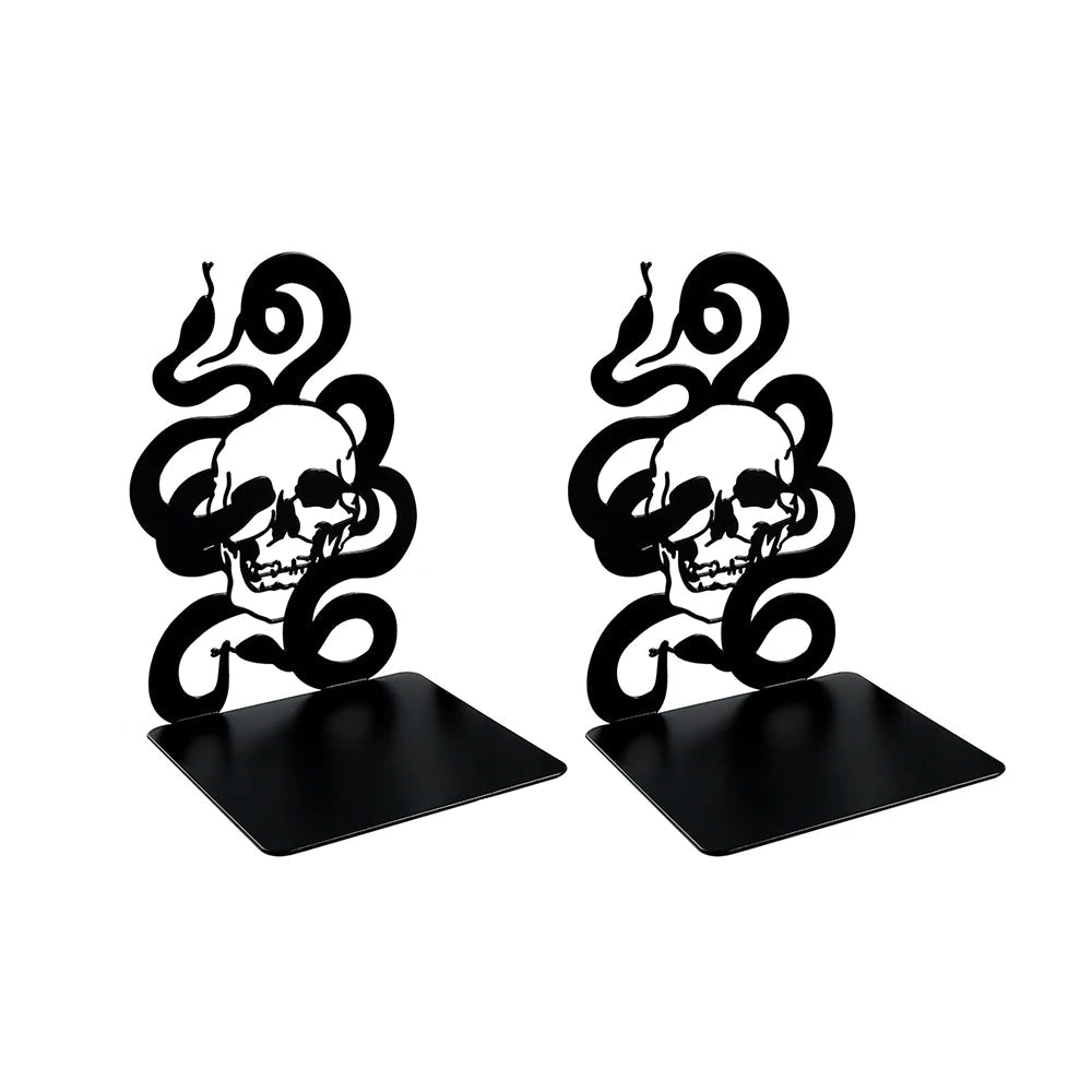 Gothischer Totenkopf – Schwarze Metall-Buchstützen mit kunstvoller Ästhetik