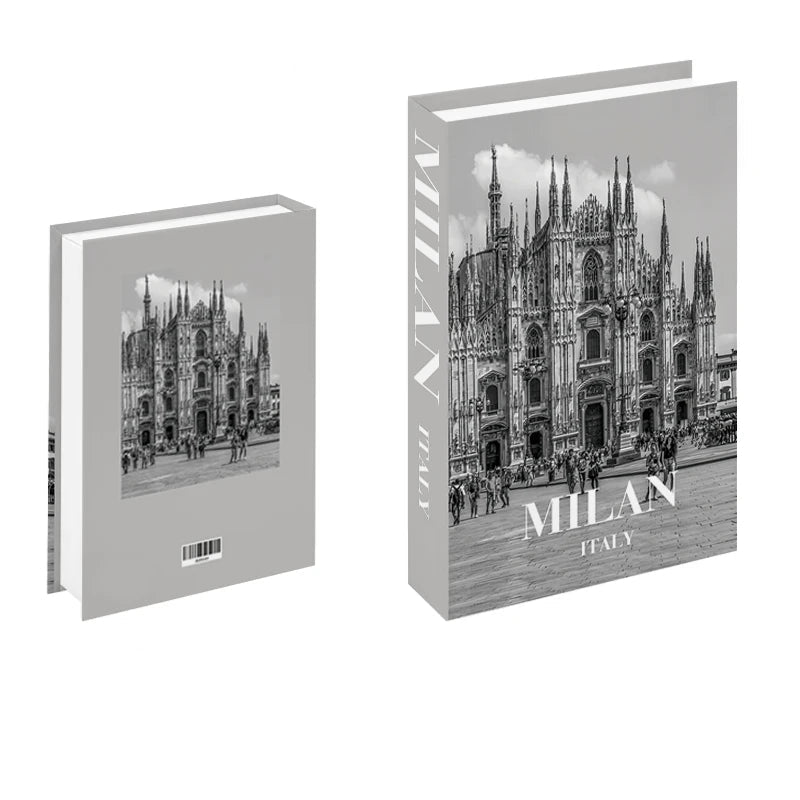 Feine Details der gotischen Architektur treten durch die monochrome Farbwelt besonders deutlich hervor. Linien, Strukturen und Proportionen wirken grafisch präzise und harmonisch zugleich. Das Deko Buch Milan passt ideal in moderne, elegante oder minimalistische Wohnkonzepte und setzt einen stilvollen Akzent auf Regalen, Sideboards oder Couchtischen.