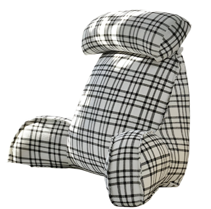 Das Design ist nicht nur ein Blickfang, sondern auch funktional durchdacht. Die großzügige Rückenlehne stützt den Oberkörper in aufrechter, entspannter Haltung – ideal für lange Lesestunden, konzentriertes Arbeiten oder gemütliche Serienabende. Die beiden seitlichen Armstützen entlasten Schultern und Ellenbogen, während das abgerundete Nackenkissen Kopf und Nacken optimal unterstützt.
