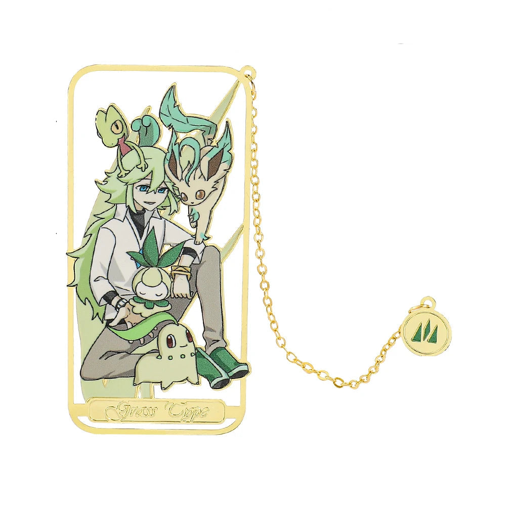 Das filigrane Metall-Design in Goldrahmung verleiht dem Lesezeichen einen edlen Look, während die feinen Details der Charaktere in lebendigen Farben zum Leben erwachen. Eine zarte Kette mit Pflanzen-Symbol-Anhänger ergänzt das Stück und macht es zu einem echten Sammlerstück für Pokémon-Fans, die Wert auf Ästhetik und Symbolik legen.