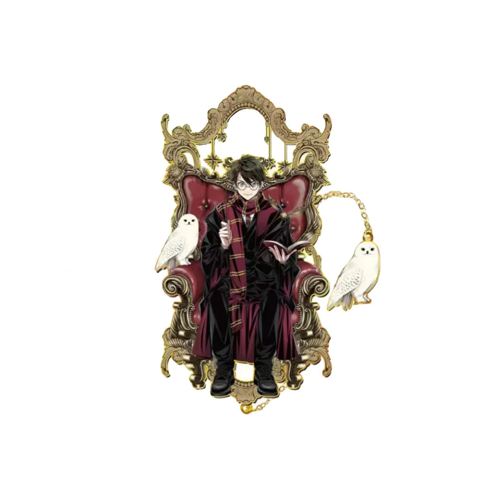 Das Lesezeichen König der Zauberwelt vereint königliche Eleganz mit der unvergleichlichen Magie der Bücherwelt. Auf einem prunkvoll verzierten Thron sitzt der berühmte Zauberer in seiner Robe, die Gryffindor-Schal über die Schulter gelegt, das Buch in der Hand – ein Sinnbild für Weisheit, Wissen und unerschütterlichen Mut.