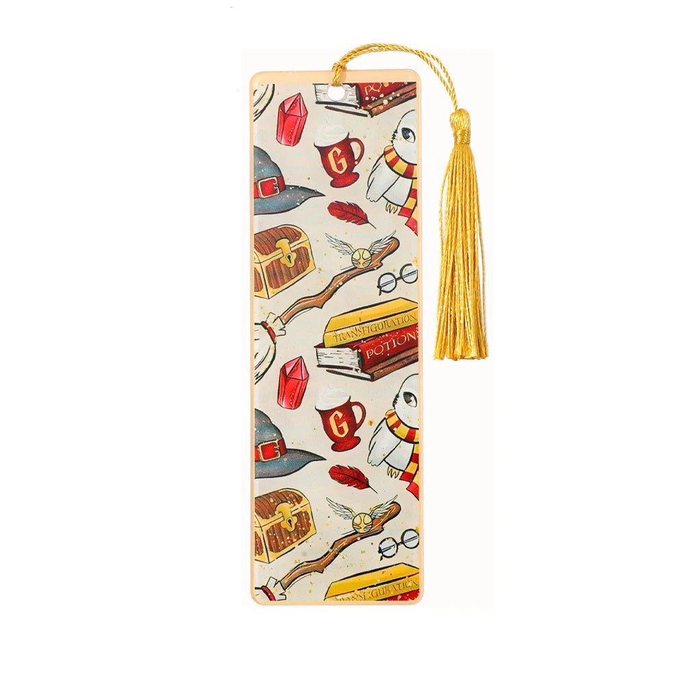 Das hochwertige Lesezeichen aus Kunststoff und Acryl ist robust und langlebig, während die goldene Quaste ihm einen eleganten, edlen Charakter verleiht. Mit seinem farbenfrohen Design voller vertrauter Gegenstände ist es nicht nur praktisch, sondern auch ein kleiner Schatz für alle Fans der Zauberwelt.