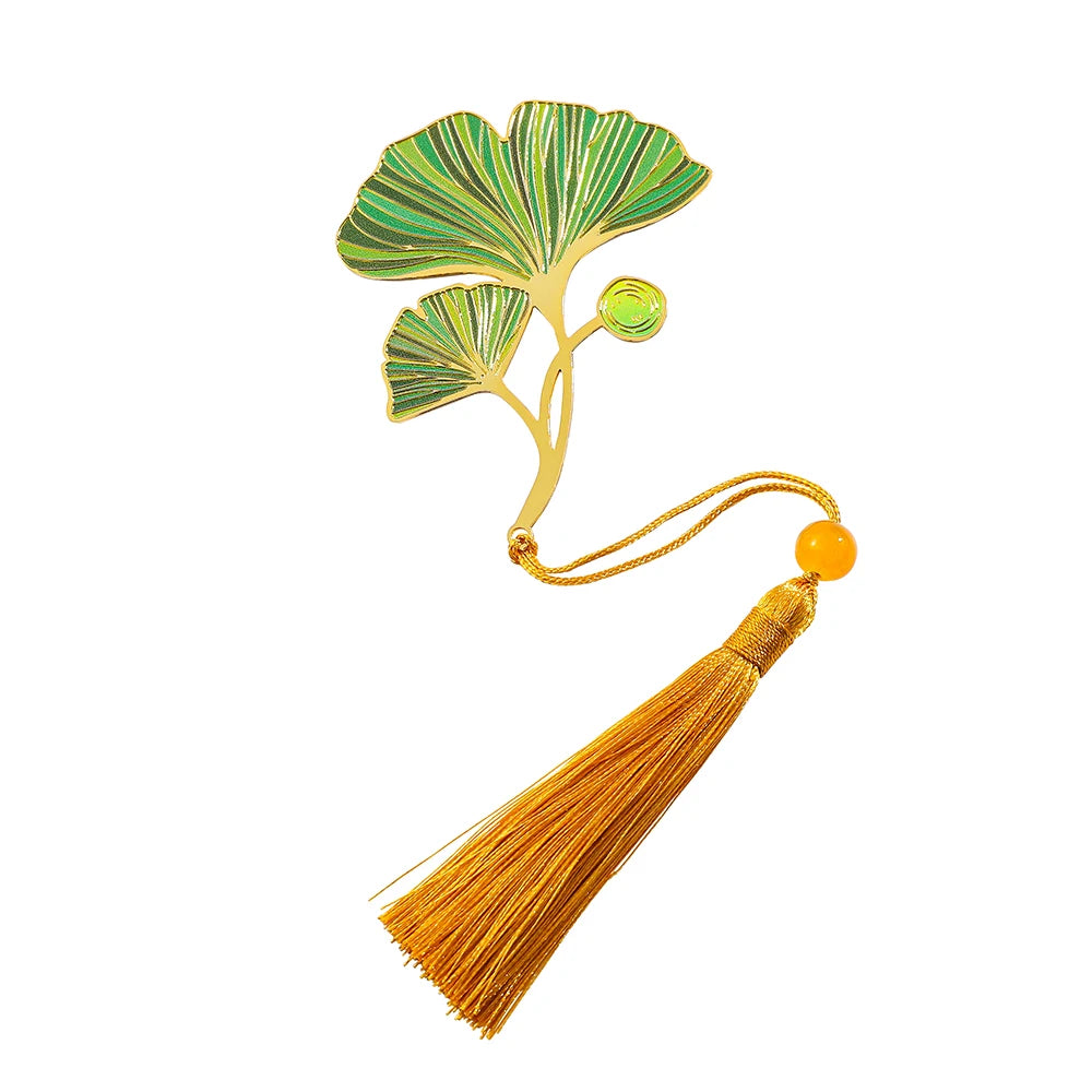 Das Aesthetic Lesezeichen vereint die Eleganz des Ginkgo-Blattes mit der Anmut fernöstlicher Symbolik. In Gold eingefasst und mit sanften Grüntönen verziert, wirkt es wie ein kleiner Talisman zwischen den Seiten Ihrer Lieblingsbücher. Der Ginkgo, Symbol für Stärke, Langlebigkeit und Weisheit, begleitet Sie bei jeder Lektüre.