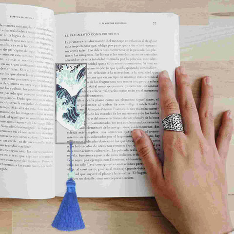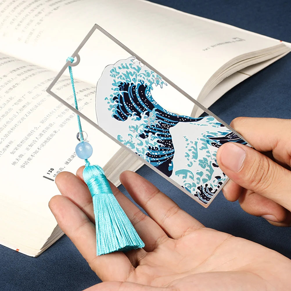 Gefertigt aus einer hochwertigen Metalllegierung, besticht es durch seine feine Verarbeitung und die intensive Farbgebung in Blau- und Weißtönen. Die Wellen scheinen fast lebendig, als würden sie über die Seiten deines Buches rollen. Der elegante Troddel in passendem Blau verleiht dem Design einen zusätzlichen Hauch von Harmonie und macht es nicht nur praktisch, sondern auch zu einem stilvollen Accessoire.