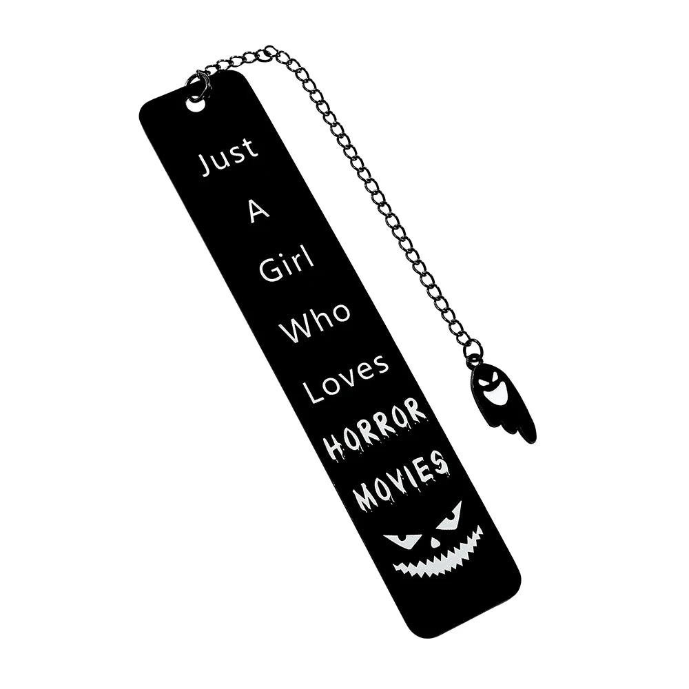 Das Lesezeichen Halloween ist das perfekte Accessoire für alle, die ihre Liebe zu Gruselgeschichten und Horrorfilmen auch zwischen den Seiten zeigen wollen. Mit der Aufschrift „Just a girl who loves horror movies“ und dem bedrohlichen Grinsegesicht kombiniert es Humor mit einer düsteren Note – genau richtig für echte Horror-Fans.