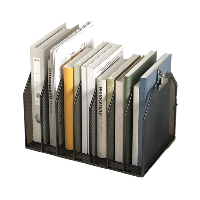 Das robuste Metallmaterial sorgt für Langlebigkeit, Stabilität und eine moderne Ästhetik, die sich sowohl im Home-Office als auch im professionellen Arbeitsumfeld harmonisch einfügt. Die schmalen Zwischenwände halten Ihre Dokumente sicher aufrecht, ohne sie zu beschädigen. Die rutschfeste Unterseite verhindert zudem ungewolltes Verrutschen.