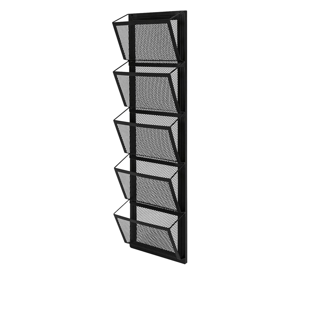 Mit seinen sechs großzügigen Fächern aus feinmaschigem Metallgeflecht bietet dieser Wandhalter Platz für alles, was Sie im Blick behalten möchten – von Tageszeitungen über Kataloge bis hin zu wichtigen Unterlagen. Jedes Fach ist leicht geneigt und offen gestaltet, damit Sie Ihre Inhalte schnell erfassen und komfortabel entnehmen können.